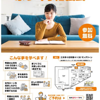 1月17日(土)1月18日(日)は家づくり勉強会を開催いたします!!集合場所:〒728-0013 広島県三次市十日市東4-1-30 サングリーン1階 SOU HOUSING店舗 ☆詳細はこちらをクリック ☆ご予約サイトはこちらをクリック ご予約電話番号:0824-63-8787 ご予約の日...