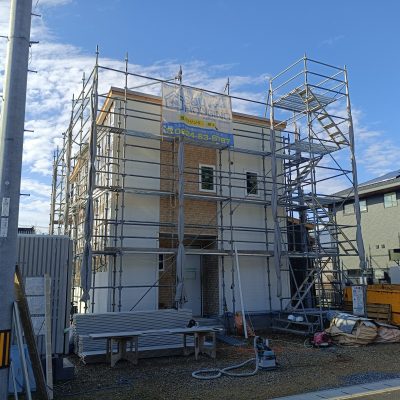 高杉町現場は足場解体が終わり、外観がはっきりと見えるようになりました。外壁サイディング、樋、破風工事、電気外部設備が完了。 続いて外部は配管工事、左官工事がスタート。内部は引き続き大工工事続いて内装工事がスタートしていきます。 こちらの物件は順調にいけば3月1日2日に完成見学会を行う予定...