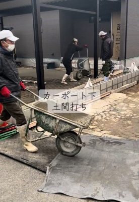 三次町現場|カーポート下の土間打ち。流す・ならす・確認する外構のひとコマ
