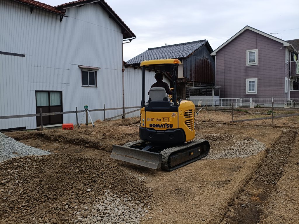 丁張からの掘方、砕石です。BMからのレベルを確認し、施工していきます。