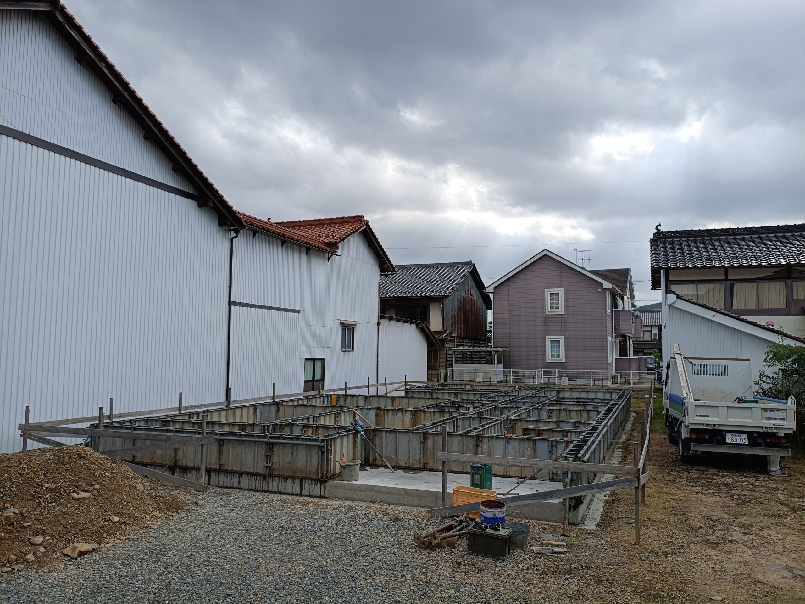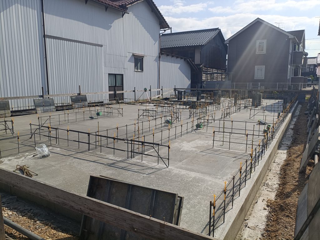 現在はベースコンクリ打ちを完了し、立ち上がりコンクリート打ちの準備中です。