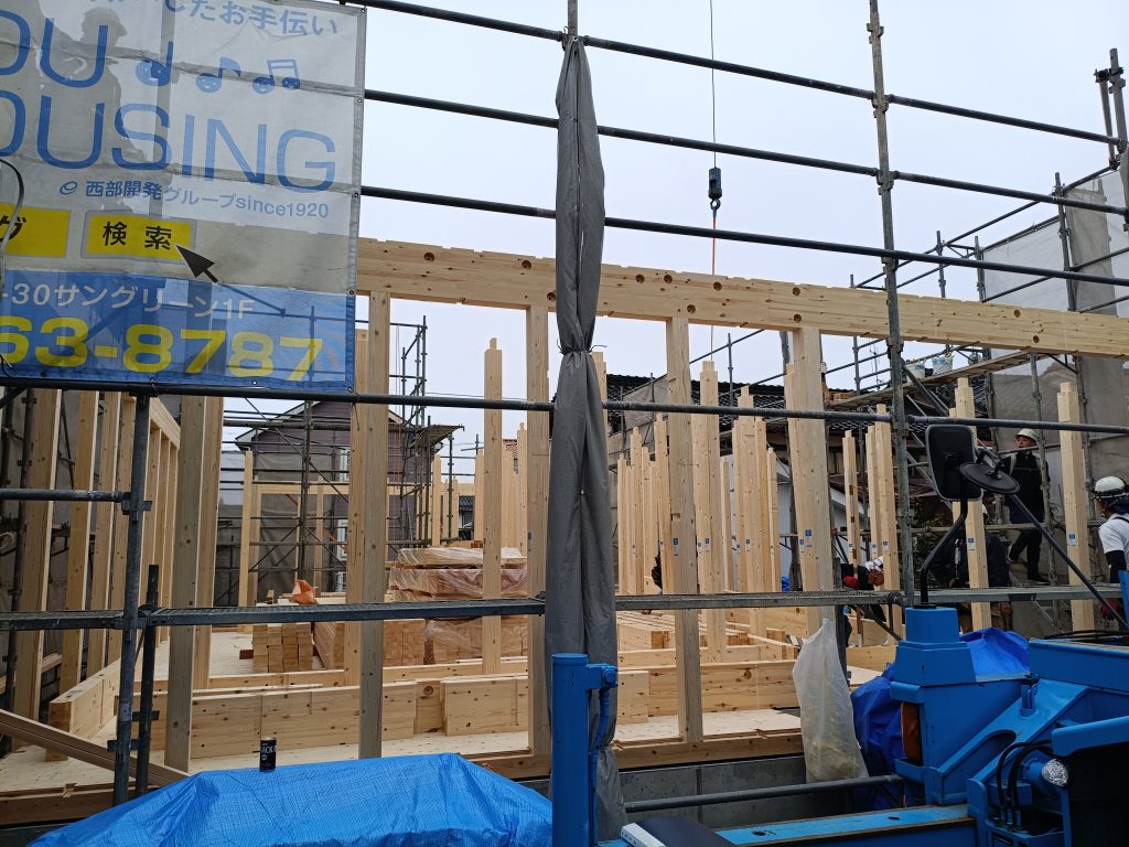 本日は大安。お日柄も天気も良く上棟をおこないました。
