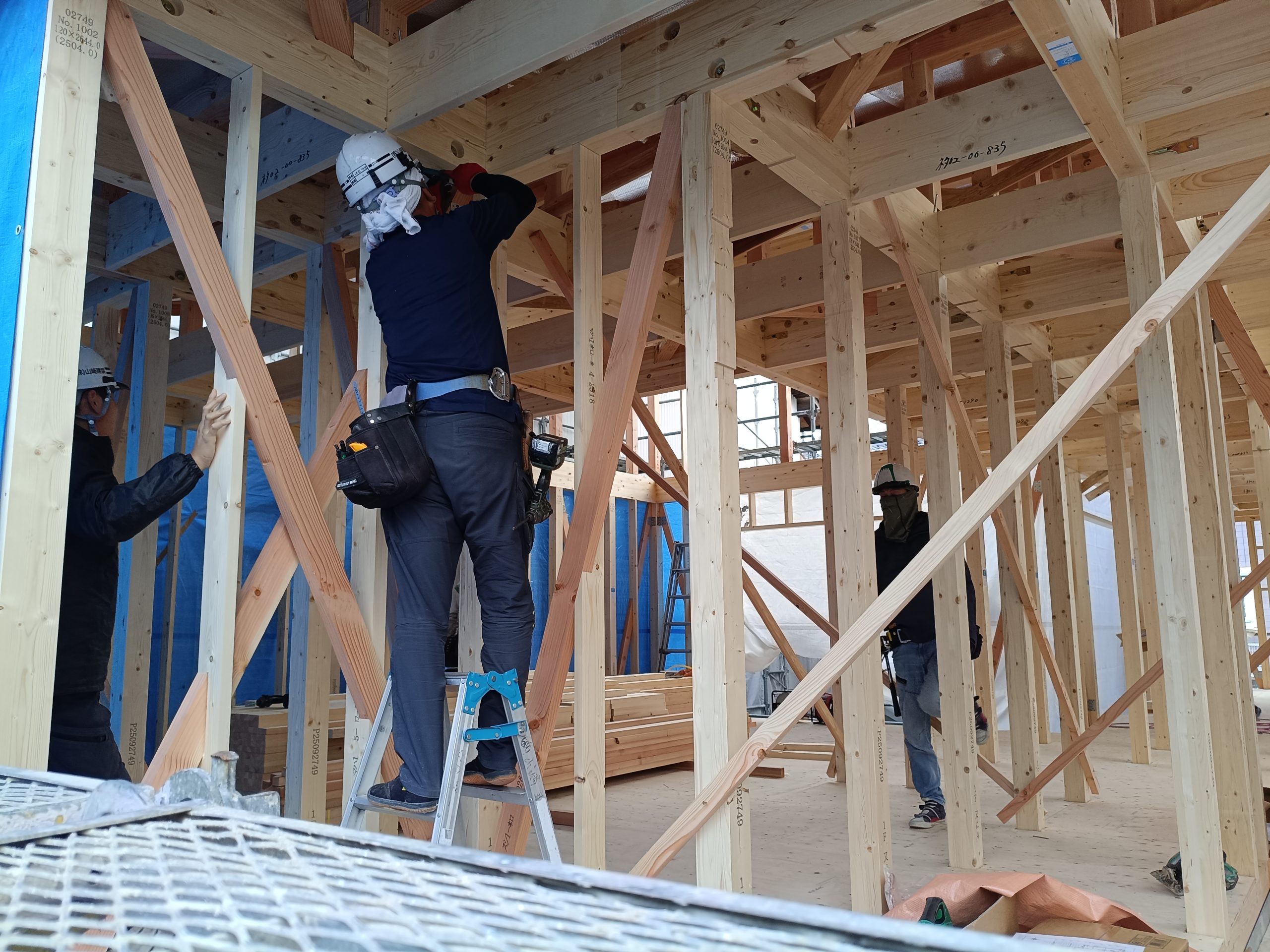 おかげさまで怪我無く無事に上棟が完了しました。続いて内部工事にはいります。