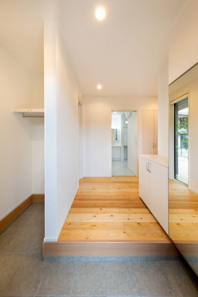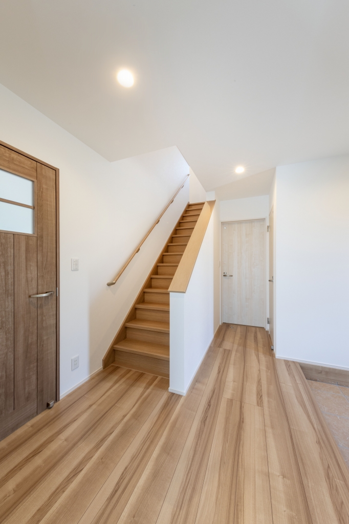 タイル土間とフローリングが切り替わる玄関ホールなど、