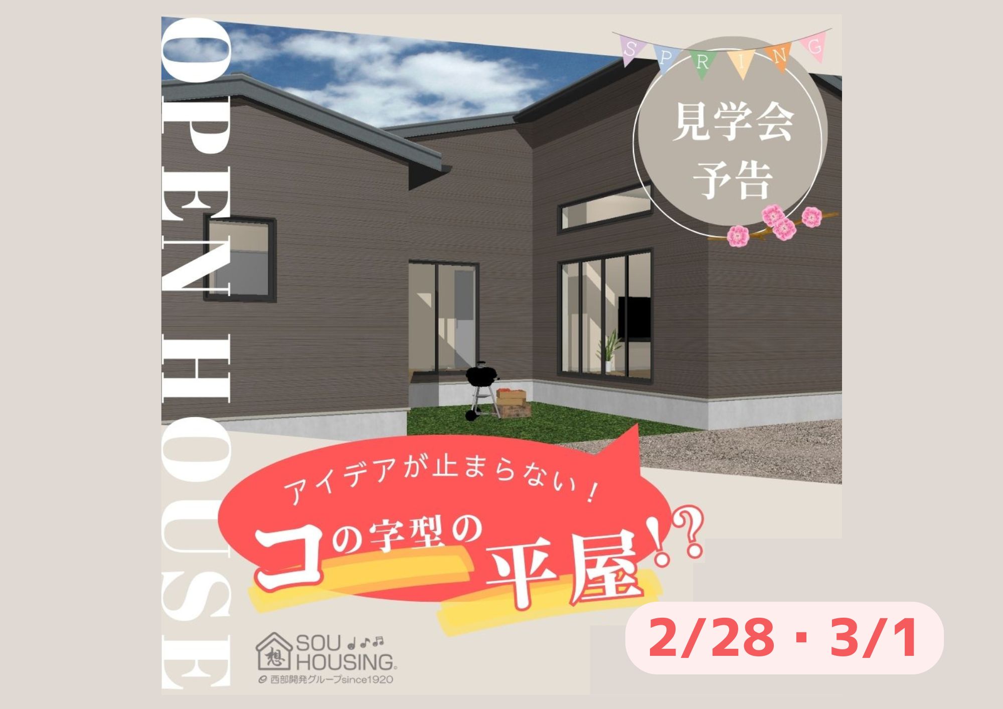 そして、2月28日・3月1日には、三次町にて「アイデアが止まらない!『コ』の字型の平屋」の完成見学会を開催予定です。