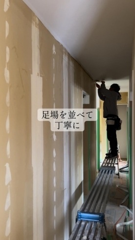 ■ 足場を一直線に並べて、天井のラインを丁寧にそろえる